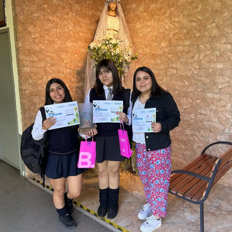 Con enorme orgullo felicitamos a nuestras estudiantes de 2° Año medio D Isidora Acevedo y Tamara Concha liderado por su profesora de ciencias Macarena Alarcón tras obtener el primer lugar en la competencia de ecoreportaje de la universidad Católica del Maule.